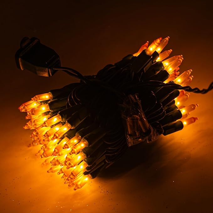 • Charming Christmas Lights: Package include 1 x 20ft mini string light, 1 x spare fuse, 4 spare incandescent bulbs. The lighted length of outdoor Christmas lights is 18.5 ft, the leading wire is 1.5 ft, and the bulb space is 2.25 inch, work voltage of each bulb is 2.5V / 0.42W, safety with built in 3A fuse.
