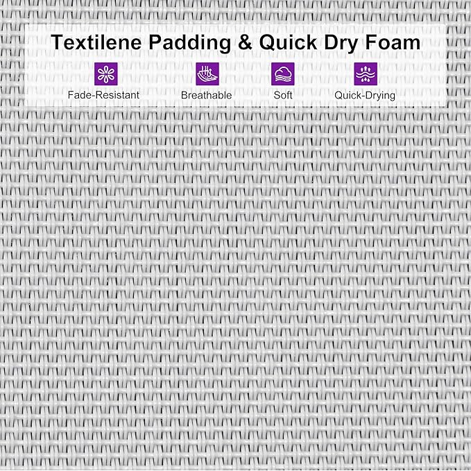 • Premium Textilene Fabric: It is filled with high-elasticity, quick- dry sponge and has excellent water permeability.