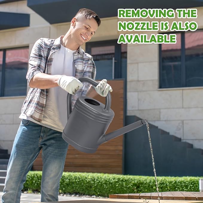• UPGRADED DETACHABLE CONVERTIBLE NOZZLE: With the help of the watering can's detachable shower nozzle, you can water your hanging or wall-mounted plants with great ease. Indoor and outdoor plants benefit from its multipurpose design's ability to manage water flow more delicately and precisely.