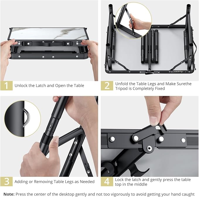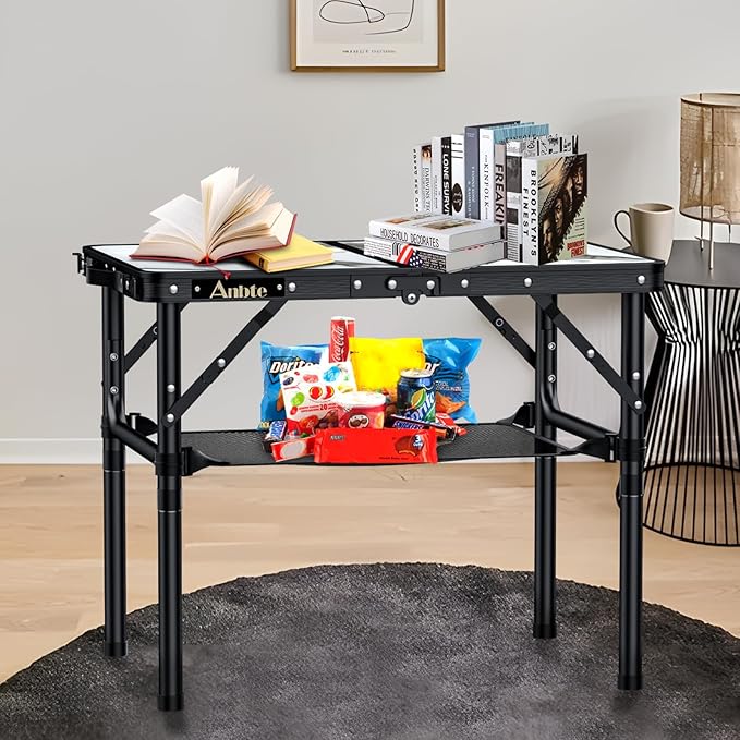 • Premium Quality Materials, Strong Load-Bearing: Anbte portable folding table's frame is made of thickened aluminum alloy and can hold up to 66 pounds, making it extremely stable. It comes with a U-shaped frame and buckles for added stability and durability