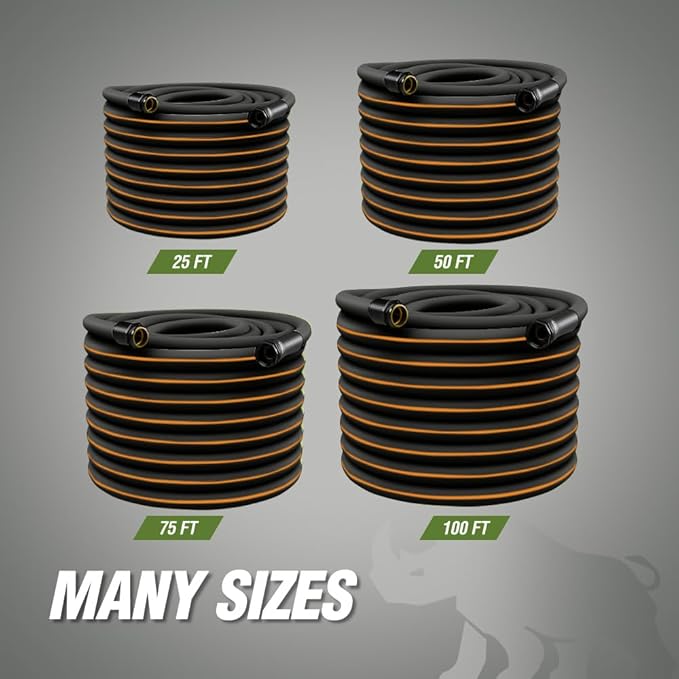 Rugged Rhino Heavy Duty Flexible Light Weight Garden Hose, 75ft x 5/8in, 4 Layer Leakproof Outdoor Gardening Tools, Watering Supplies, Powerful Water Pressure for Lawn, Flowers, Black Orange