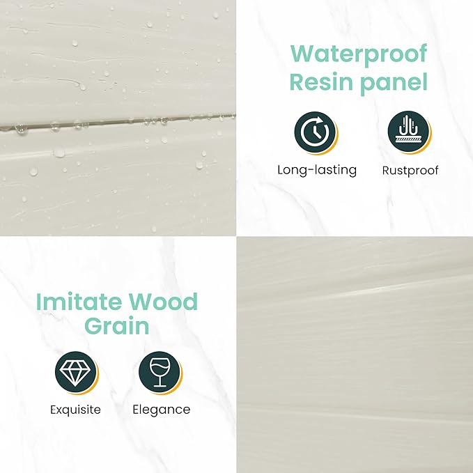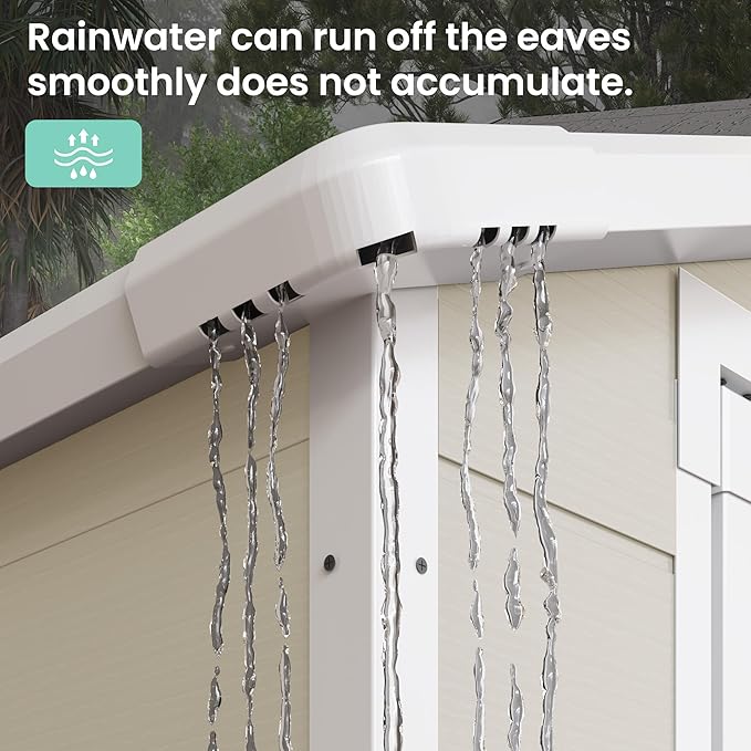 • RECYCLABLE RESIN MATERIAL: Our storage shed is crafted with 12 MM premium polypropylene resin plastic, which is recyclable. Resin shed is corrosion-resistant, waterproof, rustproof and with UV protection for more than 8000 hours, less bending and puncturing, worry-free for use in all weather conditions. It can be used daily for five years without fading