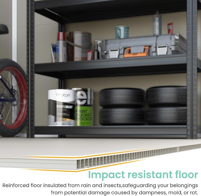• DOUBLE-WALL CONSTRUCTION: Steel-reinforced dual-wall and an impact-resistant floor are designed for long-term durability, anti-insect, anti-corrosion, and better waterproof effect. (Maximum Wind resistant grade: 6 (24-30 mph); Maximum snow thickness tolerance: 6 inches)