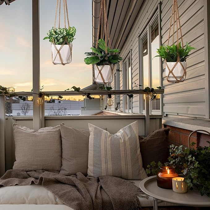 • 【WHAT YOU GET】3 hooks and 3 Ivory rope plant hanger with beads to bring variety to your boho décor, At 33 inches long,this plant holder is made using 100% Pure cotton cord it is perfect for planters up to 9 inches in diameter. perfect gift for gardening lovers. (No pot or plant included).