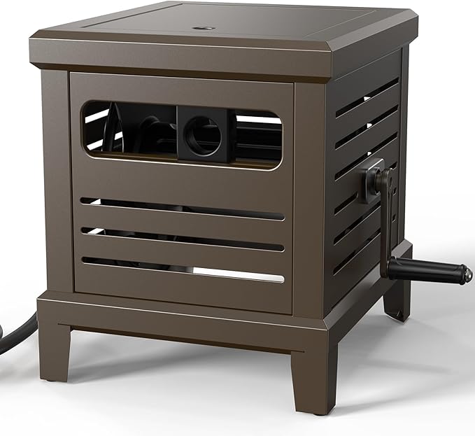 • Easy Winding & Tangle-Free Operation: This garden hose reel features a manual crank handle and hose guide system that prevents tangling and ensures smooth winding. The stable foot pedal keeps the hose reel box secure during use, perfect for organized and hassle-free storage