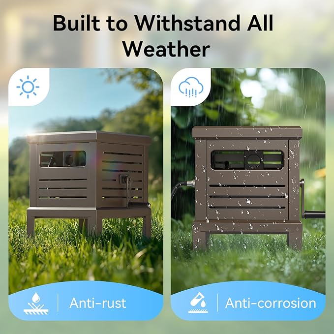 • Strong Metal Construction: Built from strong metal with a rust-resistant finish, this water hose reel is designed for long-lasting outdoor use. Its durable design makes it perfect for homeowners and gardeners who need reliable hose storage