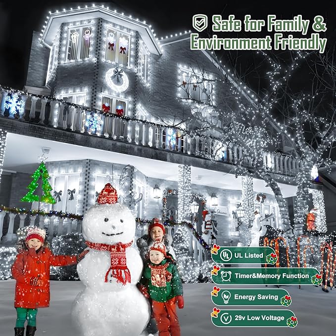 • Safety String Lights: 29V low voltage plug with UL certified, ensuring your Christmas lights are safer than ever. Great for creating a festive vibe in your home, from the front porch to the garden, or everywhere outdoors. Ideal for all holiday decor needs
