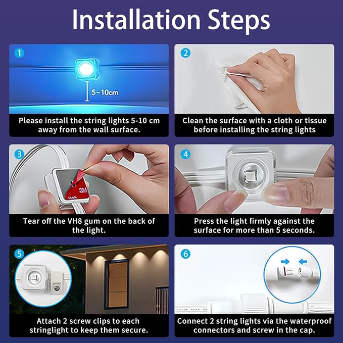 • Multicolor Lighting: The permanent outdoor lights offer 54 different scene modes and allow you to choose from 16 million colors, providing a wide range of options to decorate your house for Christmas parties
