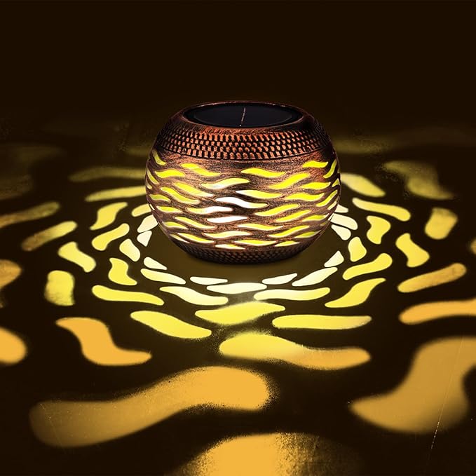 • 【Hollow-Out Metal Projection Lanterns】 Vintage Outdoor Solar Lanterns feature intricate hollow-out metal designs that cast mesmerizing patterns when illuminated. Perfect for creating romantic Christmas patio decor or elegant New Year garden lighting, these weatherproof solar projectors transform pathways and tabletops into enchanted spaces. An ideal gardening gift for women seeking unique outdoor decor with artistic flair.