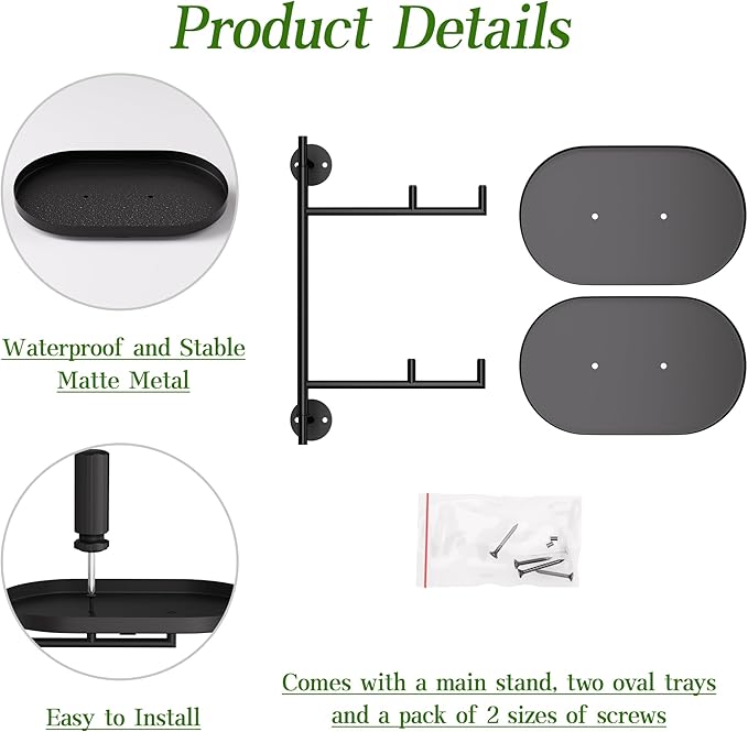 • 【Wall Mount Window Plant Shelves 】: YQSLYSF 2-tier black window plant shelves feature oval trays for two to six pots, sized between 4" to 6". The plant stands, crafted from wrought iron, are sturdy, with raised-rim bases to prevent pot falls. The indoor plant stand poles are one-piece, and no assembly is required