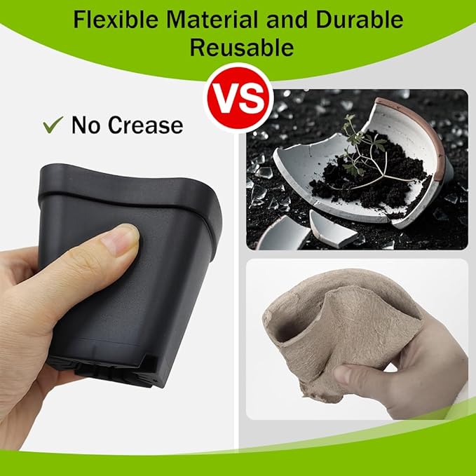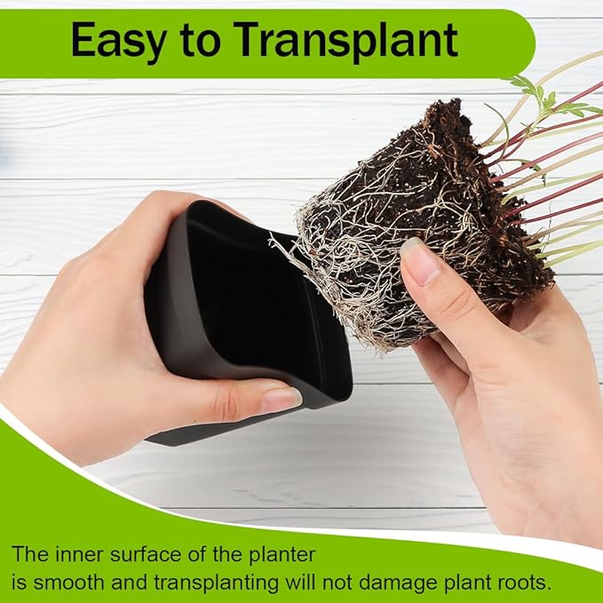 • 【Reusable Nursery Pots & Trays】Crafted from BPA-free plastic, ensuring safety for both users and plants. Made with flexible materials, these seedling pots have smooth surfaces and edges, minimizing root disturbance during transplanting and are easy to clean.