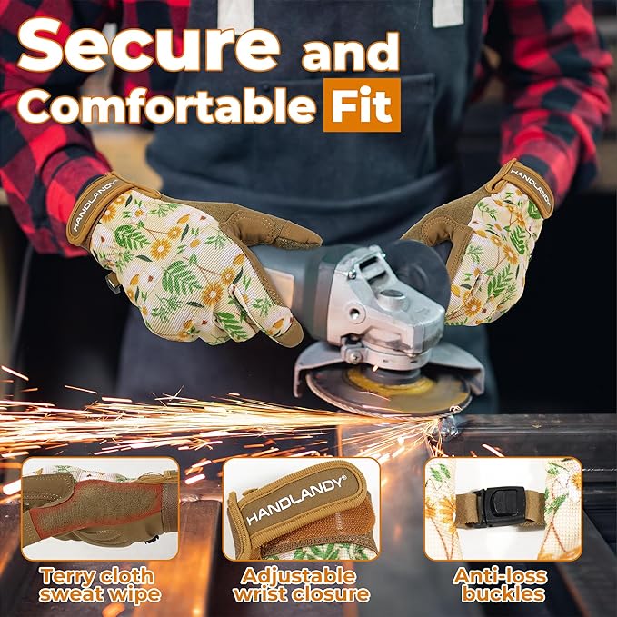 • Durable and Protective Design: Handlandy Work Gloves for Women are crafted with shock-absorbing padding to cushion your hands during heavy lifting or impact work. The reinforce saddle between thumb and index finger enhances the glove's longevity, ensuring they can withstand the rigors of your toughest tasks without damage quickly. These features promise gloves that last while safeguarding your hands from harm