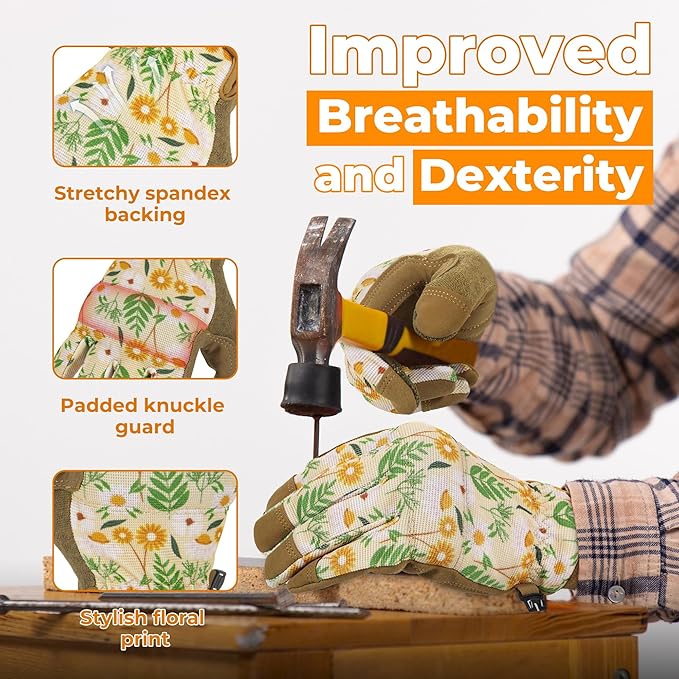 • Durable and Protective Design: Handlandy Work Gloves for Women are crafted with shock-absorbing padding to cushion your hands during heavy lifting or impact work. The reinforce saddle between thumb and index finger enhances the glove's longevity, ensuring they can withstand the rigors of your toughest tasks without damage quickly. These features promise gloves that last while safeguarding your hands from harm