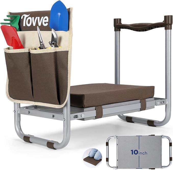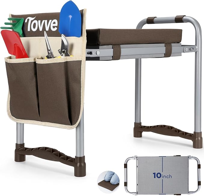 • 【2 in 1 Garden Stool】This 10-inch wide garden kneeling seat provides you with better comfort and support, making gardening easier. It can be used as a comfortable garden seat for pruning taller plants. It can also be laid flat on the ground as a supportive kneeling pad to avoid dust and weeds when kneeling to weed. Reduce the pressure on your back and knees when gardening.