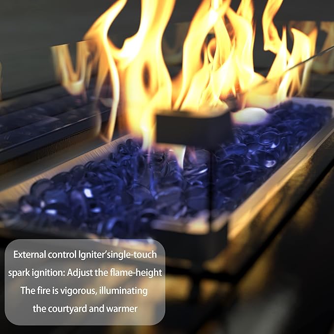 • Auto-ignition Firepit: Patio propane fire pits are CSA certified and meet all electrical requirements to ensure reliability and safety. Equipped with a high-efficiency burner, integrated push-button ignition, easy start and flame height adjustment, and heat up to 55,000 BTU
