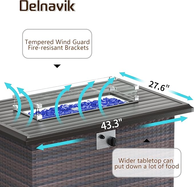 • Glass Windshield: Ignite a warm, inviting flame over the sparkling glass rocks and watch it burn all night, as an included glass wind guard adds elegant appeal while keeping the fire going even during a breeze. The Outdoor Rattan Fire Pits Table provides heat to whoever is around your fire table, we won’t leave you out in the cold