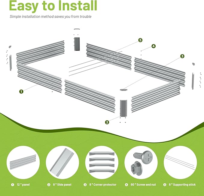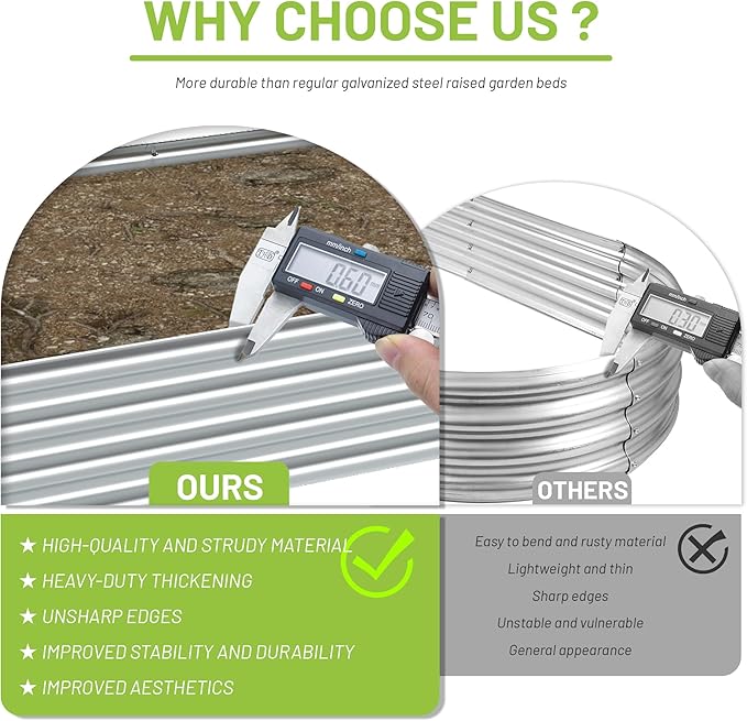 • HIGH-QUALITY MATERIALS: The product uses galvanized metals, which have better surface gloss than other painted metal plates and they are less likely to lose paint and color. We also use thicker metal plates which will better protect the soil and vegetables and will not easily cause product deformation and damage.