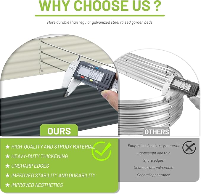 • HIGH-QUALITY MATERIALS: The product uses color-coated metals, which have better surface gloss than other painted metal plates and they are less likely to lose paint and color. We also use thicker metal plates which will better protect the soil and vegetables and will not easily cause product deformation and damage.