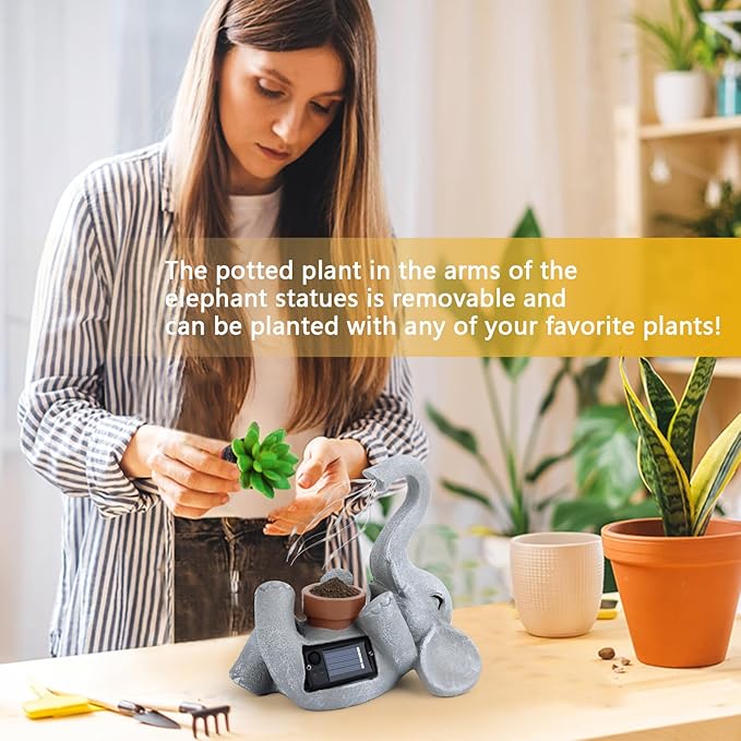 • GARDEN DECOR: This elephant statue is made of high-quality resin with solar-powered LED strings. At night, when the solar string lights up and looks like water flows, adds a warm and lively atmosphere to the garden, yard, or patio