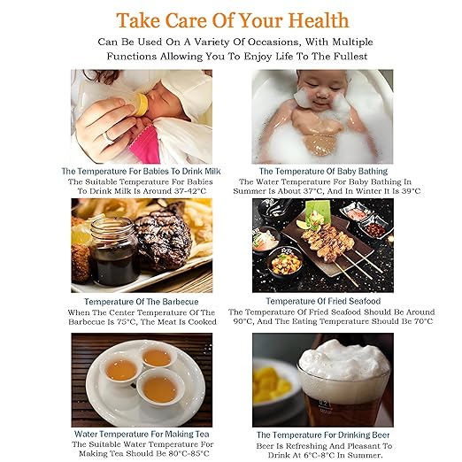 • HIGH PRECISION AND ACCURATE READINGS: Our digital food thermometer delivers precise temperature control with advanced technology, ensuring your meals are cooked to perfection every time. Water thermometer with accuracy of ±1℃ (±2°F). Wide temperature range from -58°F to +572°F (-50°C ~ +300°C).