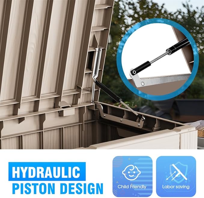 • ADAPTABLE TO VARIOUS SCENES: Whether used as an indoor laundry storage chest or an outdoor deck box container for items like outdoor cushions, garden tools, pool accessories, and sports equipment, this patio storage box provides abundant space. It's also versatile as a side table, yard seat, storage bench, or footrest