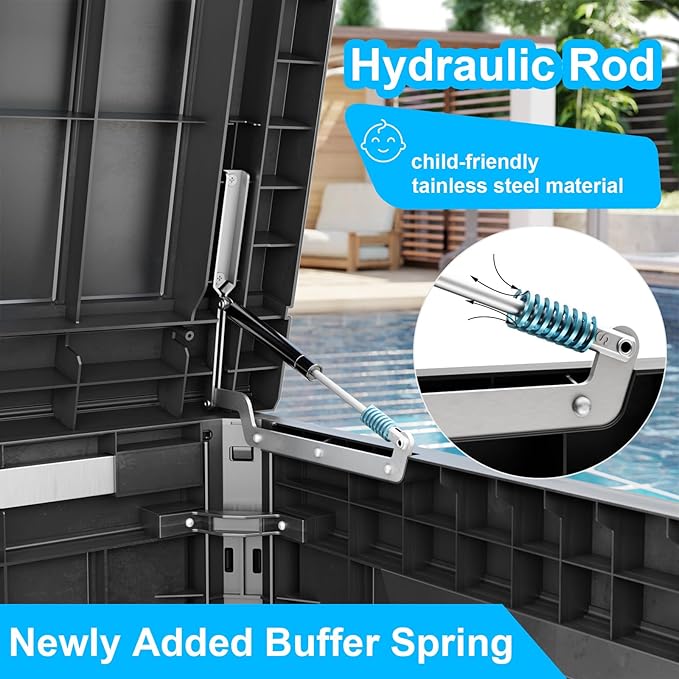 • EASY TO USE: The deck storage box is designed for convenience with built-in handles on both sides, allowing easy lifting and movement. Plus, for added security, you can install a password lock/small lock (not included) on the top cover