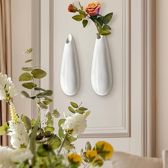 • Minimalist Design:These white wall-mounted vases feature a minimalist style that is perfect for both indoors (such as a hallway, staircase, or a cozy spot near a sunny window) and outdoors (such as a porch, patio, or garden wall)