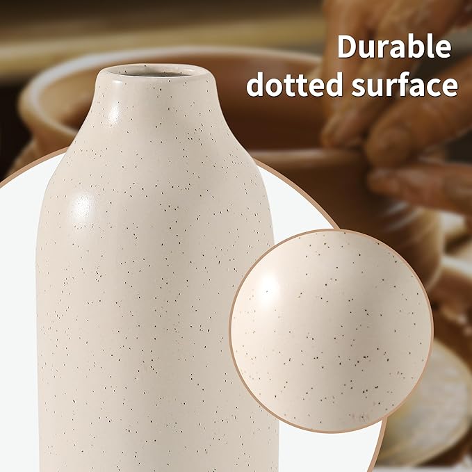 • Masterful Ceramic Craftsmanship – This vase set of 3 is meticulously crafted from premium clay and fired at high temperatures for lasting durability. Featuring a dotted pattern and a corrosion-resistant surface, the vases also have a waterproof interior, making them ideal for holding fresh flowers and preserving their vibrancy. They also elegantly showcase artificial plants and dried flowers, adding a timeless charm to your home.