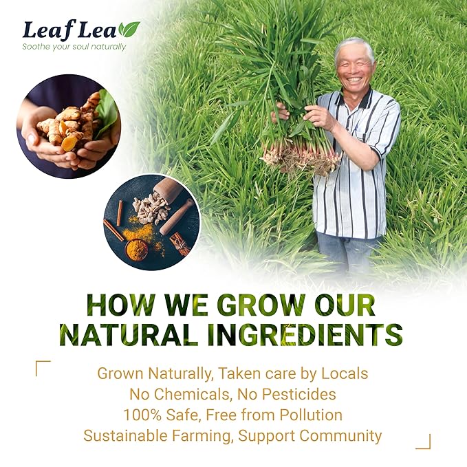 • 100% Pure & Natural: Made with the perfect blend of turmeric (70%), ginger (20%), and cinnamon (10%), our turmeric ginger cinnamon tea bags are crafted. Enjoy a completely sugar-free, gluten-free, and caffeine-free tea that’s suitable for vegans and ideal for a wholesome, natural tea experience.