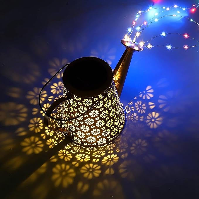 • 【Charming Garden Decoration Lights】: 2 watering can lights will be a charming addition to your patio at night, emitting bright lights that looks like strings of shining stars pouring out of a watering can, casting beautiful patterns on the ground for a romantic atmosphere. You'll love them when they light up your garden.