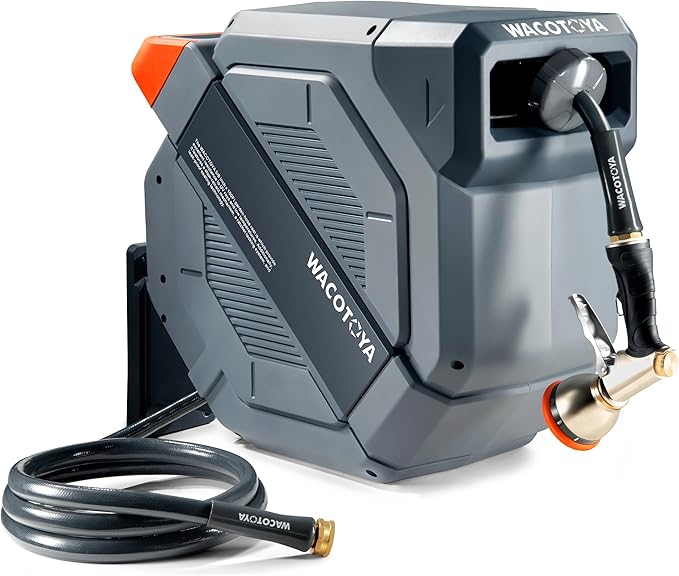 • Born for Irrigation: WACOTOYA engineers designed a gentle water pressure system for the auto rewind water hose reel to protect plants and ensure efficient irrigation with high flow rates