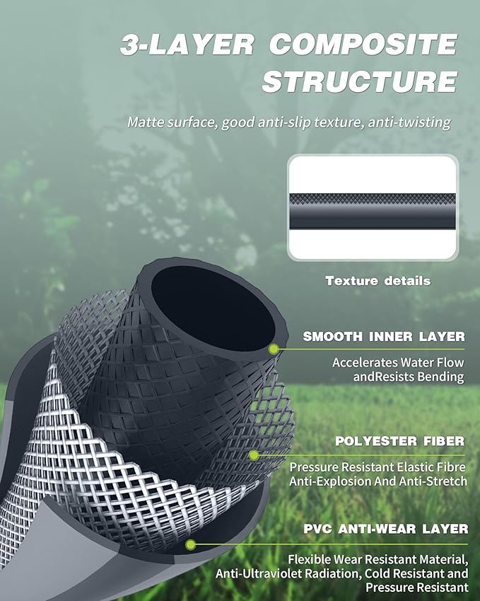 • High-Quality Hose: This can handle up to 120 psi working pressure and 348 psi burst pressure, with a brass hose connector to prevent cracking or leaking. The internal support mesh also has superior kink resistance