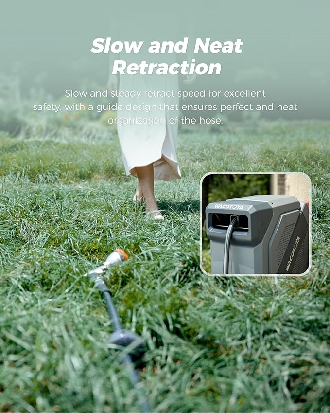 • Born for Irrigation: WACOTOYA engineers designed a gentle water pressure system for the auto rewind water hose reel to protect plants and ensure efficient irrigation with high flow rate
