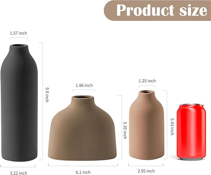 • Living Room Decor and Accessories – (Dimensions: 9.9” x 3.22”; 6.1”L x 1.96”W; 5.35”L x 2.95”) These vases are the ideal home house decor, effortlessly complementing any room or style. Whether your aesthetic is boho, modern farmhouse, rustic, or cottagecore, this versatile set brings a timeless, elegant touch to your space.