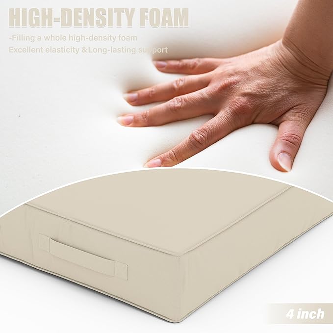 Patio Chair Cushions 19 X 19 X 4 Inch Waterproof Outdoor Seat Cushions for Patio Furniture, Outdoor Sofa Couch Pads with Ties & Handle, Set of 2, Cream