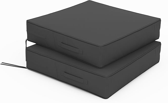 Patio Chair Cushions 24 X 24 X 5 Inch Waterproof Outdoor Seat Cushions for Patio Furniture, Outdoor Sofa Couch Pads with Ties & Handle, Set of 2, Grey