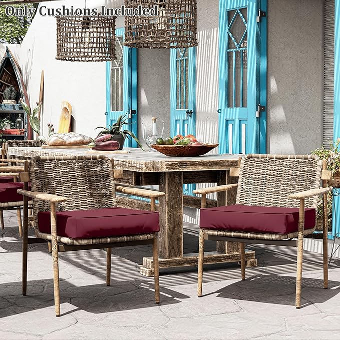 Patio Chair Cushions 24 X 24 X 5 Inch Waterproof Outdoor Seat Cushions for Patio Furniture, Outdoor Sofa Couch Pads with Ties & Handle, Set of 2, Burgundy