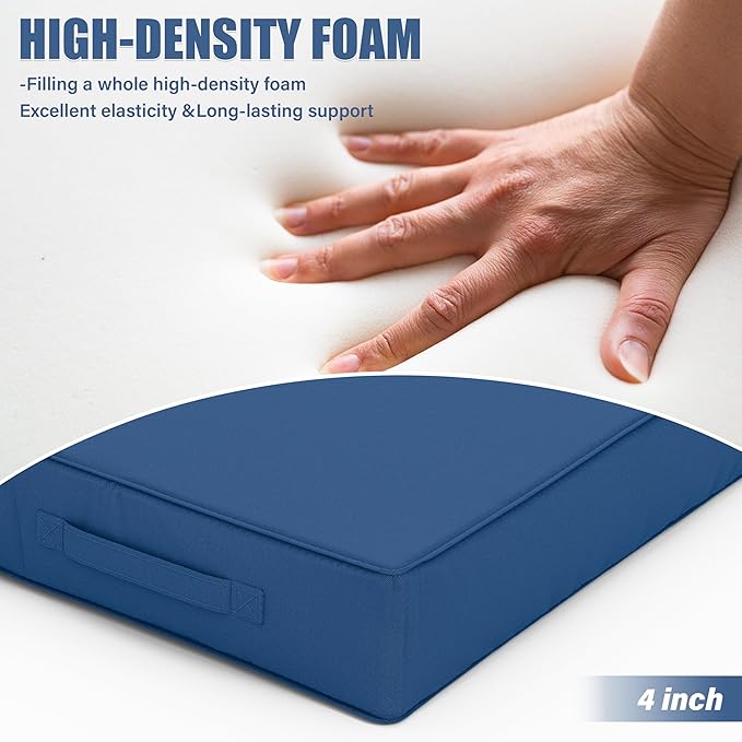 Patio Chair Cushions 22 X 22 X 4 Inch Waterproof Outdoor Seat Cushions for Patio Furniture, Outdoor Sofa Couch Pads with Ties & Handle, Set of 2, Blue