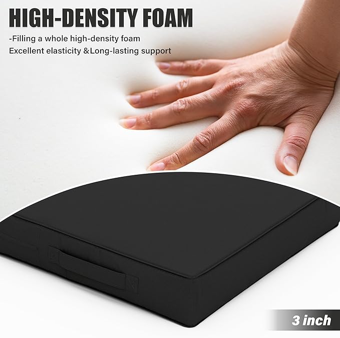 • 🎄 UPGRADED SUPPORT - Tounosnt's patio chair cushion is a full 3 inches thick, filled with premium 30D high resilience foam that is super comfortable and soft, with beyond-color resilient support and long-lasting recovery to give you the ultimate in comfort. When you use a seat, it is hard and at the same time, it can cause discomfort. While you use our outdoor chair cushion, it supports your hips and reduces the pressure points on your lower body, Enjoy long hours of relaxation.