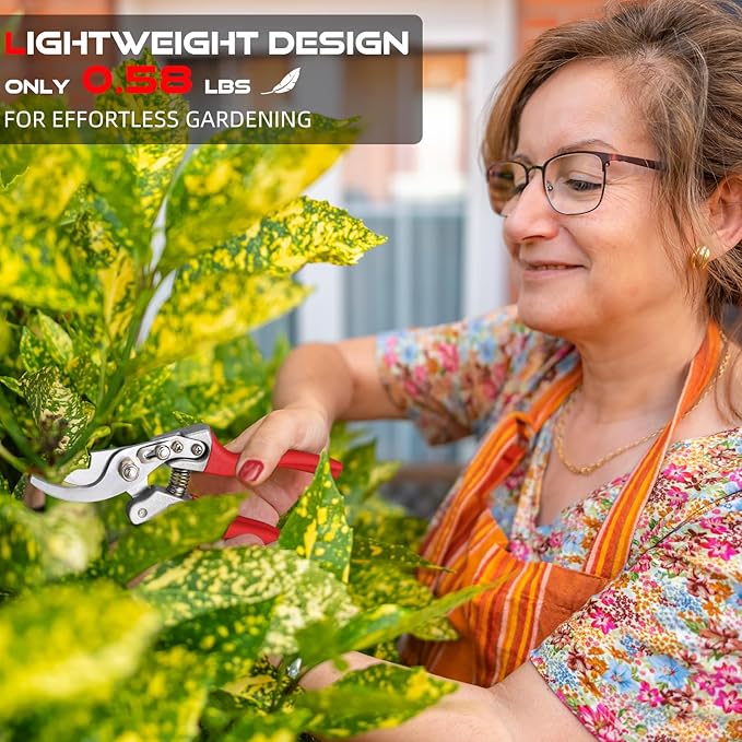 • POWERFUL LEVER CUTTING TECHNOLOGY: Garden shears feature an innovative lever cutting design that triples the cutting force, making it effortless to prune thicker branches. Perfect for branches up to 1 inch in diameter, the lever mechanism enhances cutting power through an optimized structure, allowing you to handle thick, wet, or dry wood with ease