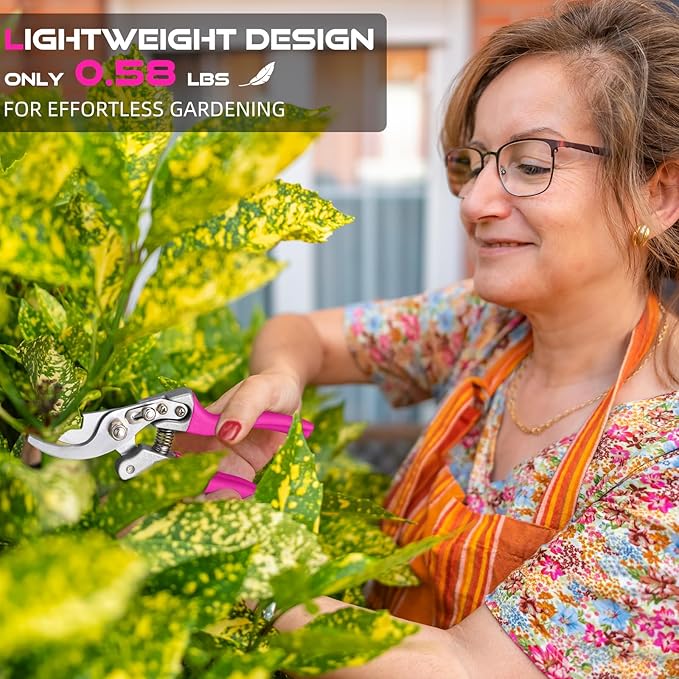 • FEMALE & ELDERLY-FRIENDLY: The ergonomically designed, non-slip rubber handles reduce hand fatigue and ensure a comfortable, stable grip. The cushioned design minimizes wrist and hand strain, making these pruners ideal for long use and for those with arthritis or anyone needing extra comfort