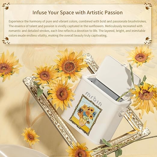 Mrbin Metal Compost Bin Countertop with Lid, Hanging Trash Can for Kitchen Cabinet Door, Wall Mounted Indoor Recycle Basket Food Waste Scrap Dustbin for Kitchen Under Sink with Inner Bucket, Sunflower
