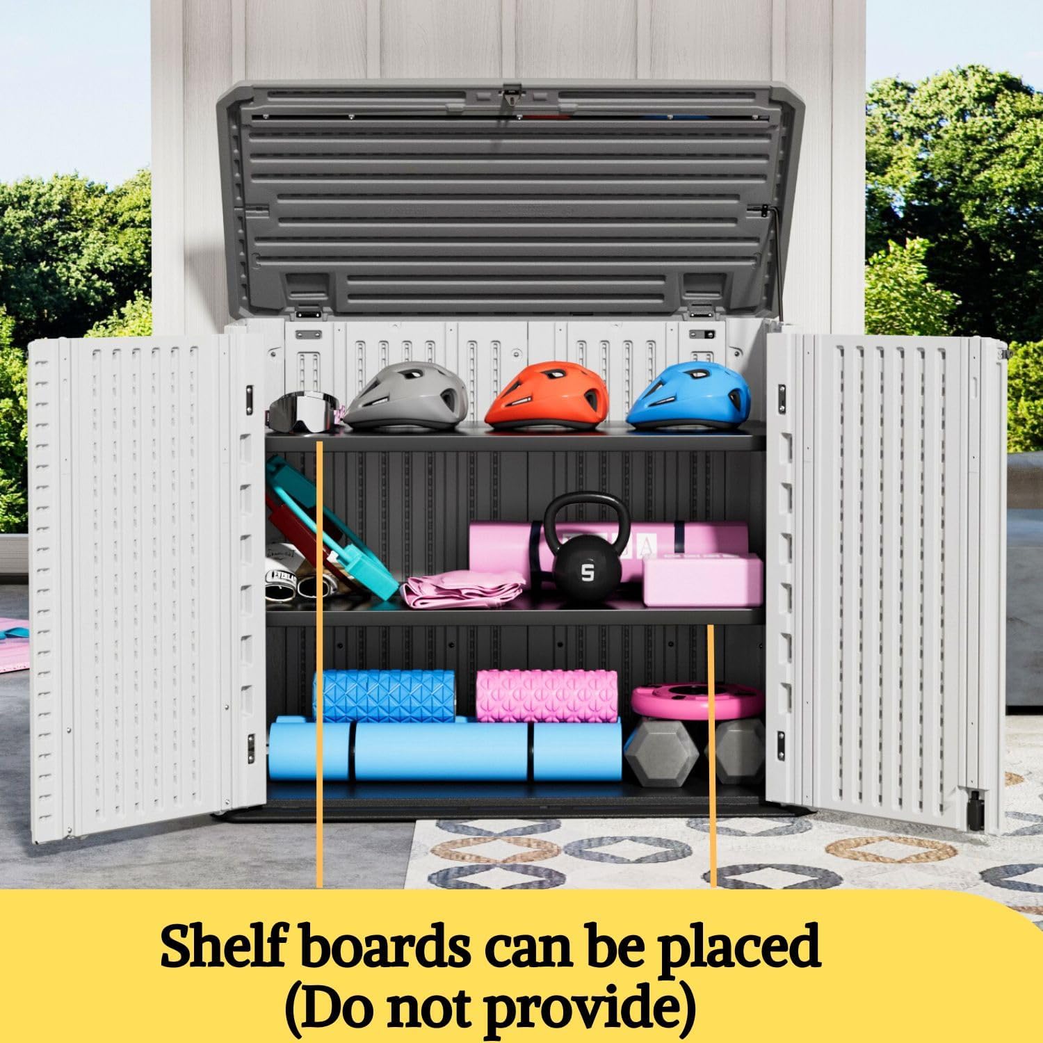 • Spacious Storage Solution: Meet your new storage shed buddy! With external dimensions of 50''W x 29''D x 41''H, making it ideal for your shed & outdoor storage cabinet needs.