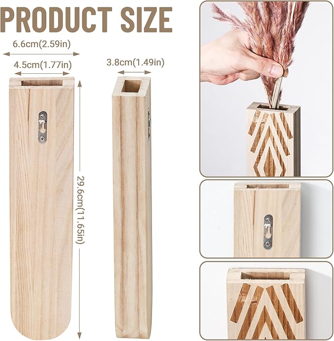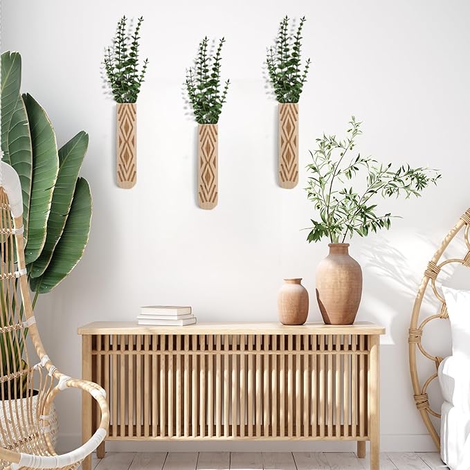 • Whether you're looking to enhance the ambiance of your bedroom, living room, bathroom, or office, our wall vases for decor provide a striking focal point that will transform any space into a stylish oasis. Create a calming and inviting atmosphere by displaying your favorite flowers, succulents, or herbs in these eye-catching wooden planters.