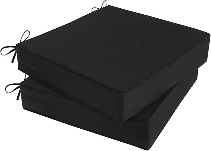 Outdoor Chair Cushions Set of 2 for Patio Furniture 22x22x4 Inch Waterproof Patio Chair Cushion 3 Year Color Fastness Square Elastic Foam Garden Couch Pads with Ties and Handle,Black