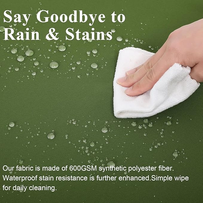 • WATERPROOF FABRIC: The patio chair cushion is made of 600GSM high density polyester waterproof cover with waterproof PU coating inside. All-around waterproof and rainproof to protect the inner sponge