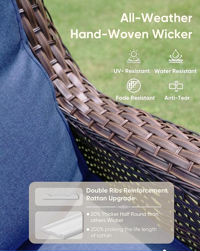 • 5-Inch Thick Cushions for Unmatched Comfort: Our patio swivel chair features Olefin cushions that are 5 inches thick, crafted from high-quality and high-resilience sponge. This design ensures exceptional comfort and support, allowing you to relax for hours without fatigue. The cushions maintain their shape over time, providing lasting enjoyment. In addition, the removable covers make for easy cleaning, keeping your chair looking fresh and new for years to come.