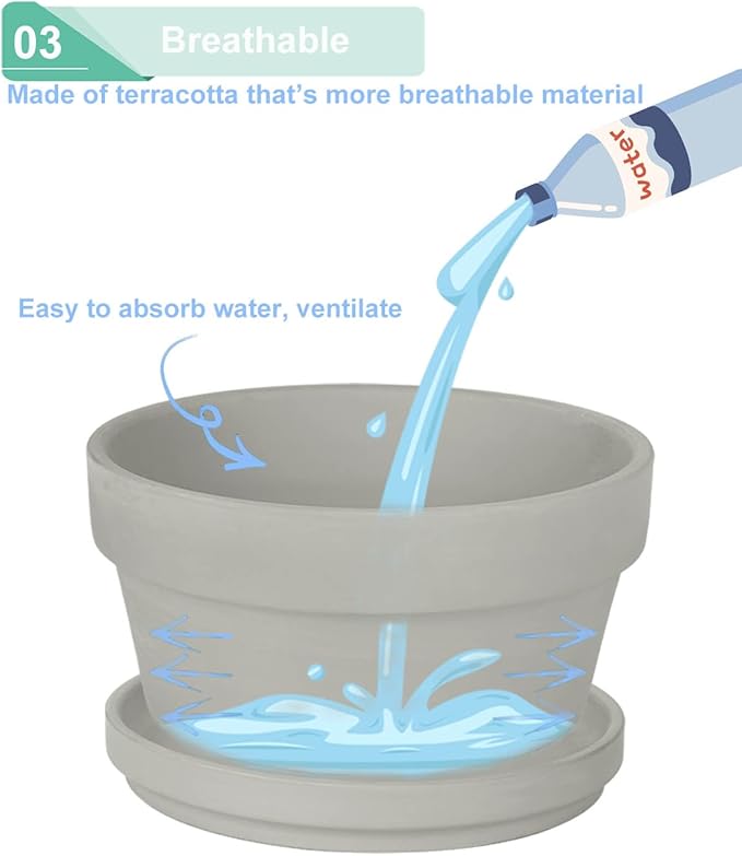 • Quality Materials: Terra cotta pots Making from high-quality clay through high-temperature baking, the walls of the pots draw the water out of the soil to help the soil dry quicker.