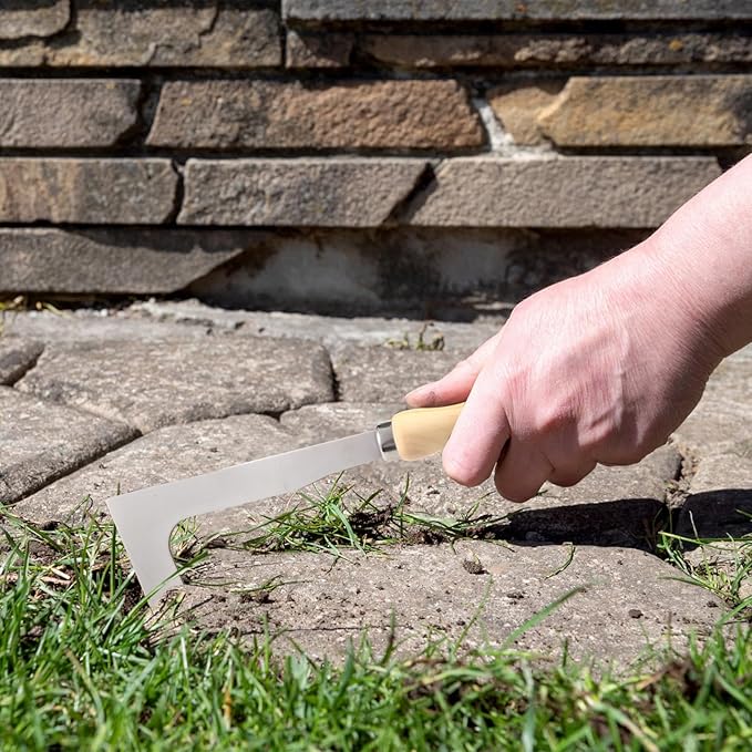 • Hand Crack Weeder: the L-shaped blade is ideal for removing stubborn moss and weeds between paving stones; The sharp cutting part of the tool can easily remove weeds and moss from stones, and it helps trim the edges of lawns very effectively