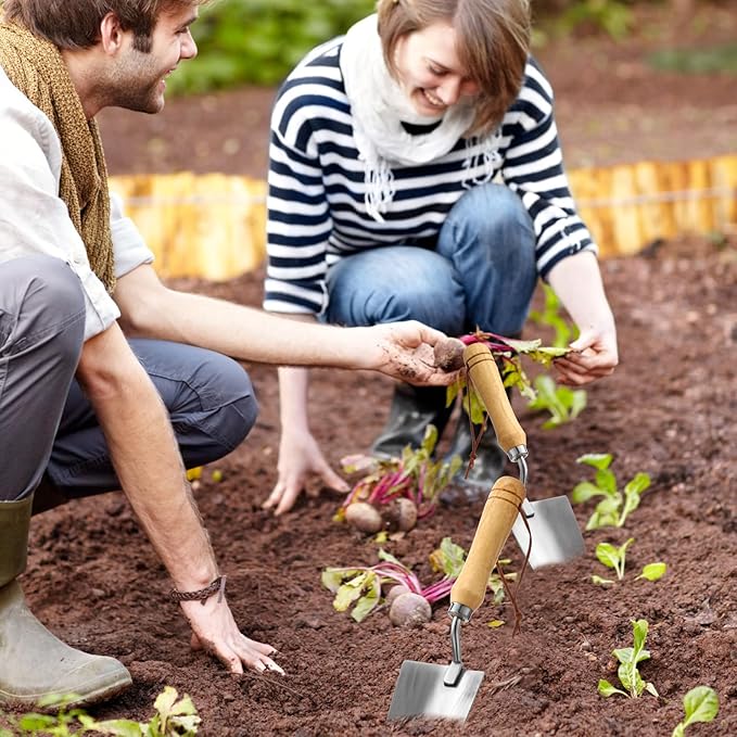 • Dibber Garden Tool Sets: 5-piece garden tool set made of wooden handle/stainless steel, including Hand Dibber, Hand Crack Weeder, Transplanter, Big Trowel, 3-claw Cultivator, suitable for all major gardening tasks such as sowing, transplanting, digging, weeding, loosening, cutting, etc
